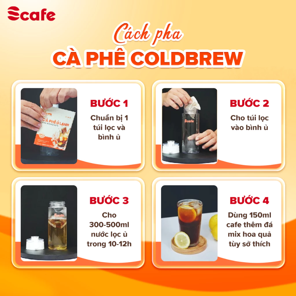 – Hướng dẫn sử dụng cà phê ủ lạnh cold brew túi lọc: