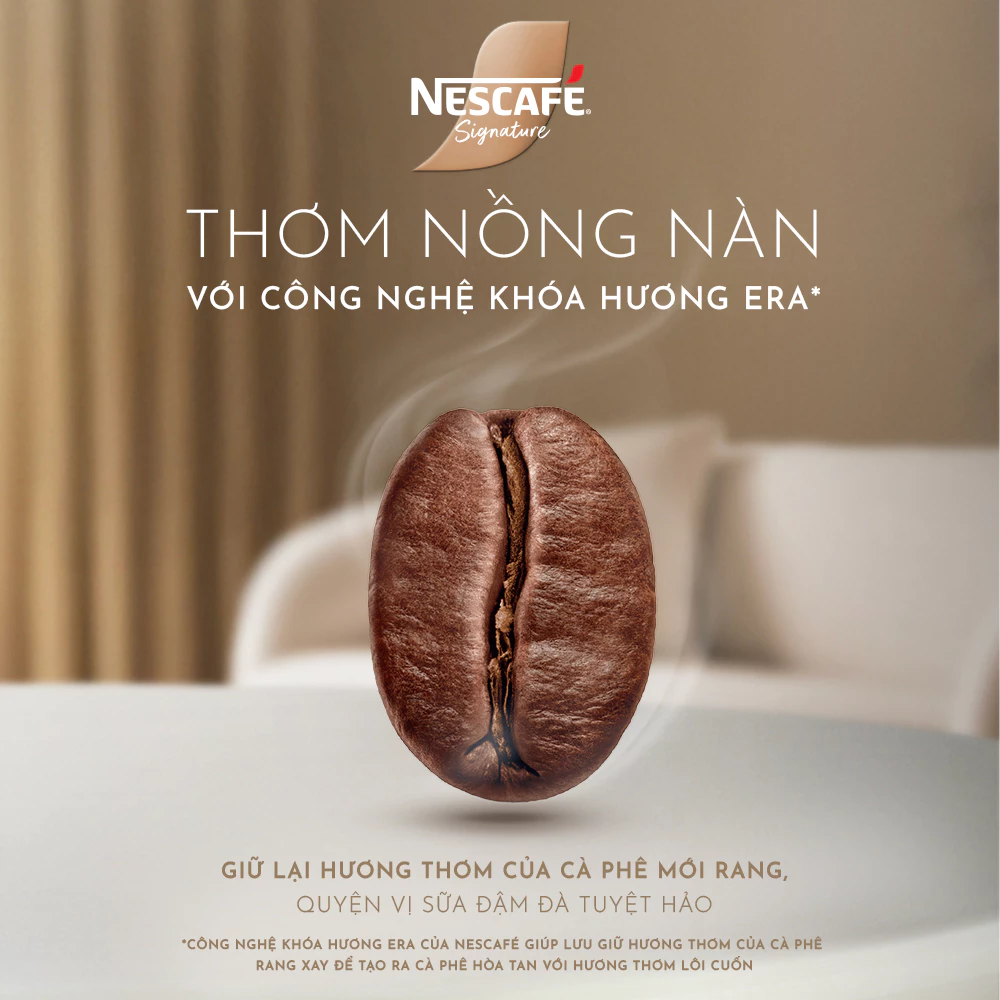 NESCAFÉ tự hào ra mắt dòng sản phẩm cà phê sữa NESCAFÉ Signature hoàn toàn mới, mang đến ly cà phê sữa thơm nồng nàn với công nghệ khóa hương ERA giúp lưu giữ hương thơm của cà phê mới rang, quyện cùng vị sữa đậm đà nhằm mang đến trải nghiệm cà phê sữa như ngoài quán.